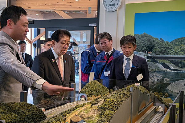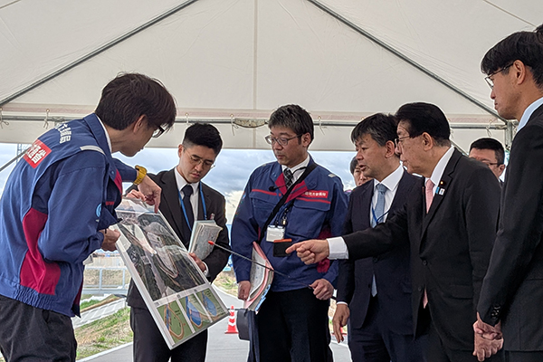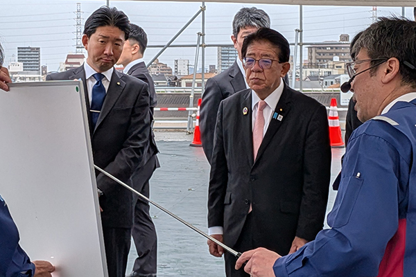 4月4日(土)、金子大臣は、地形的特性も踏まえ、流域全体で関係者が一体となって取り組む、全国的にも先進的な大和川流域の流域治水の取組を視察しました。