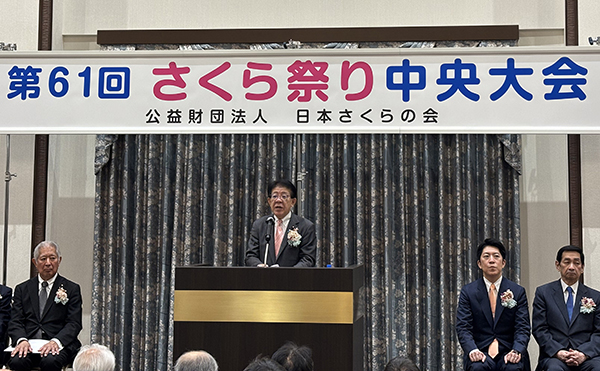 金子大臣は、「長年にわたり、桜の保護・育成などにご尽力された「さくら功労者」に対し敬意を表するとともに、日本さくらの会のさらなるご活躍によって、桜を愛する活動の輪がますます広がることを祈念いたします。」と祝辞を述べ、また、桜も咲き誇る「横浜グリーンエクスポ」への参加を呼びかけました。