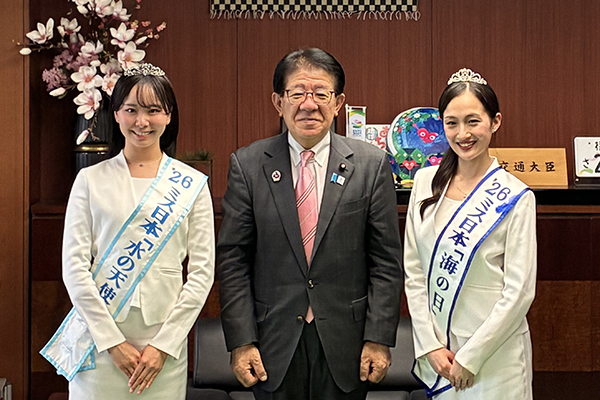 表敬訪問では、ミス日本「水の天使」志村美帆さんが「水の広報官」として、ミス日本「海の日」野口絵子さんが「海洋業界への理解と関心を高める役割」として、今後の活動への意気込みを語りました。