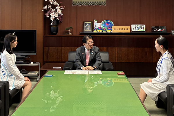 4月8日(水)、金子大臣は、2026年ミス日本「水の天使」志村美帆さんとミス日本「海の日」野口絵子さんの表敬訪問を受けました。