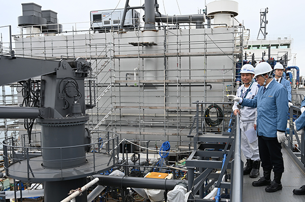 大型アンモニア燃料船を視察する金子大臣