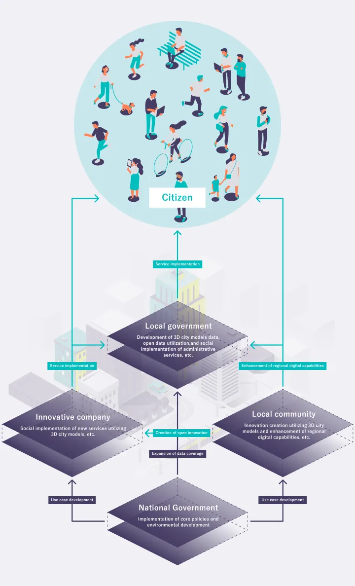 The project aims to build an “ecosystem” in which the development, utilization, and open data release of 3D city models evolve autonomously.