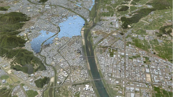 Use in disaster prevention planning and simulation, risk visualisation, evacuation route apps, disaster prevention workshops.
