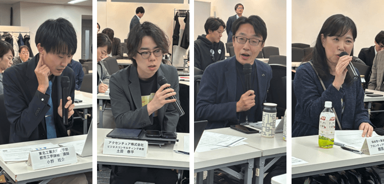 東北大学の舘田あゆみ氏は、全体を通して、自治体からの受託に依らないビジネスモデルや、登壇企業同士の連携による新たな展開へ期待を示した。また、都市で暮らす「人」の行動や変化に、より焦点を当てた提案の必要性にも言及した。
