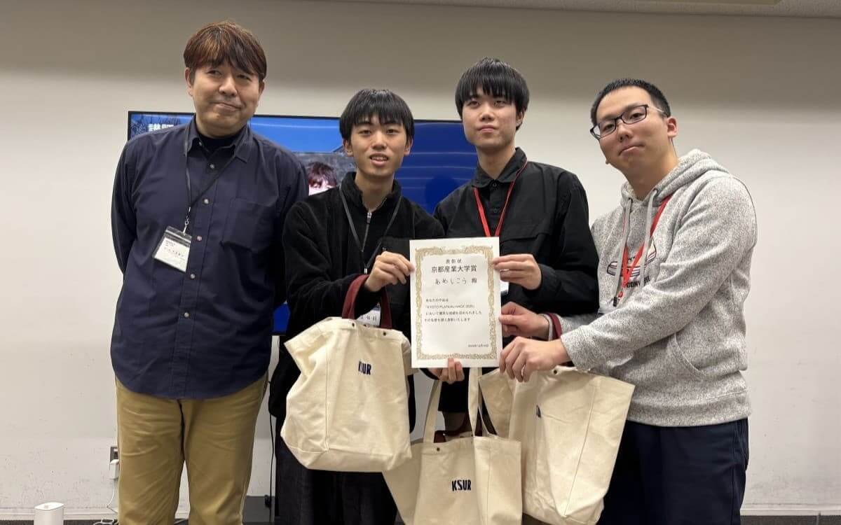 京都産業大学賞とオーディエンス賞を同時受賞したのは、チーム「あめしこう」による 「Travel GO」。本作が向き合ったのは、京都観光における移動のストレスとオーバーツーリズムという、極めて現実的な課題だ。「Travel GO」は、この問題を規制や注意喚起ではなく、体験設計で解決しようとした点が特徴的だった。