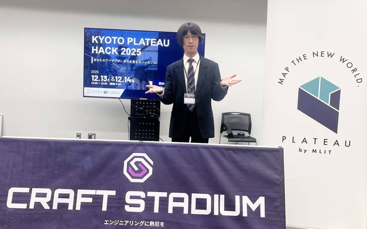 国土交通省が推進する3D都市モデルの整備・オープンデータ化プロジェクト「PLATEAU」を活用し、都市の課題解決に挑むイベント「KYOTO PLATEAU HACK 2025 〜あなたのアイデアが、まちを変えるハッカソン〜」が京都を舞台に、2025年12月13日(土)、14日(日)の2日間にわたって開催された。本イベントは、京都市、京都産業大学、株式会社CoPaletteが共催し、ハッカソンプラットフォーム「CraftStadium」を通じて運営された。