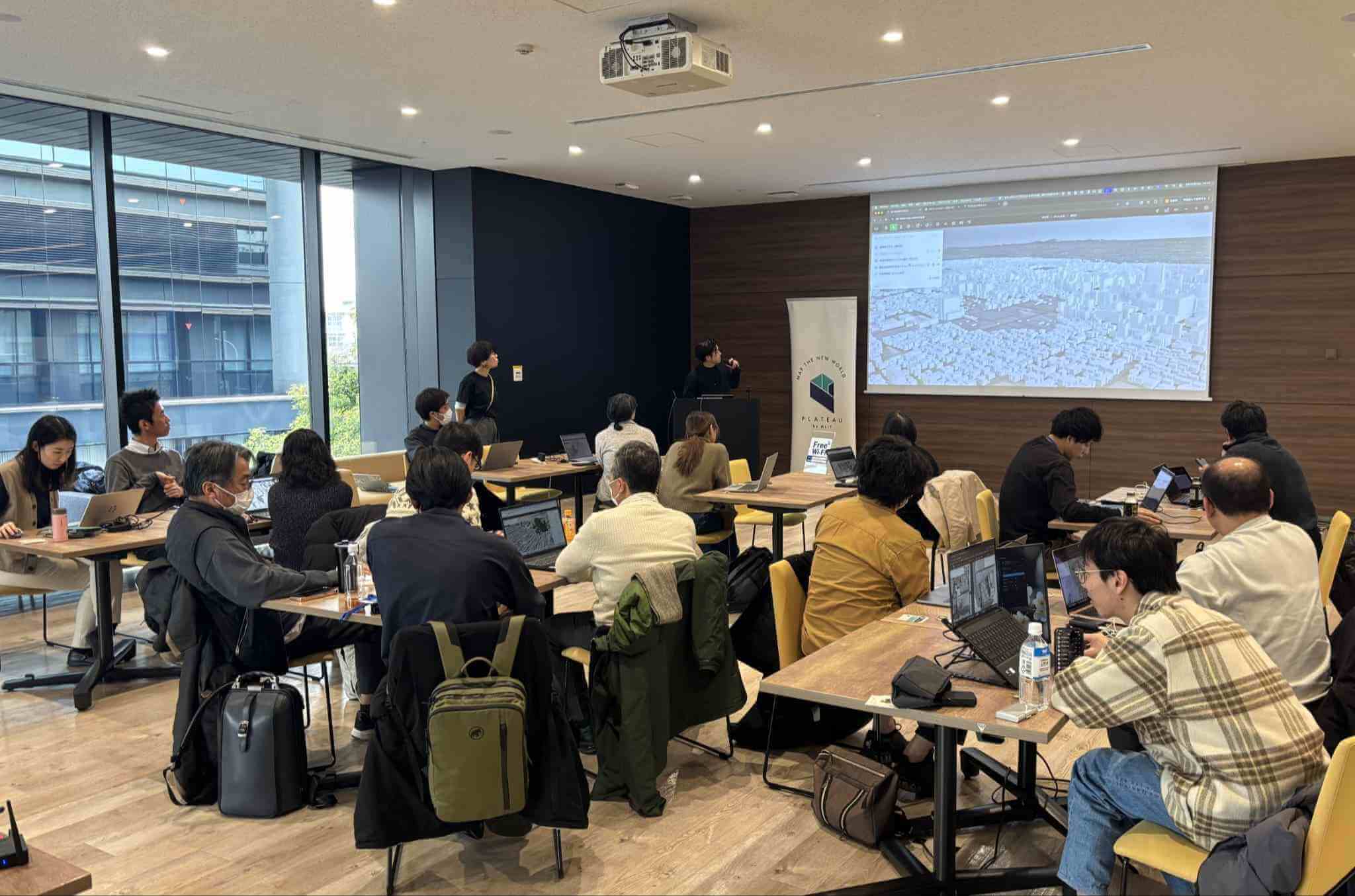 当日は、エンジニアやデザイナーだけでなく、地域のことに関心を持つさまざまな立場の人たちが参加しました。専門的な知識がなくても取り組めるよう、前半にはインプットの時間を設け、PLATEAUの概要や活用事例を学ぶ構成となっています。