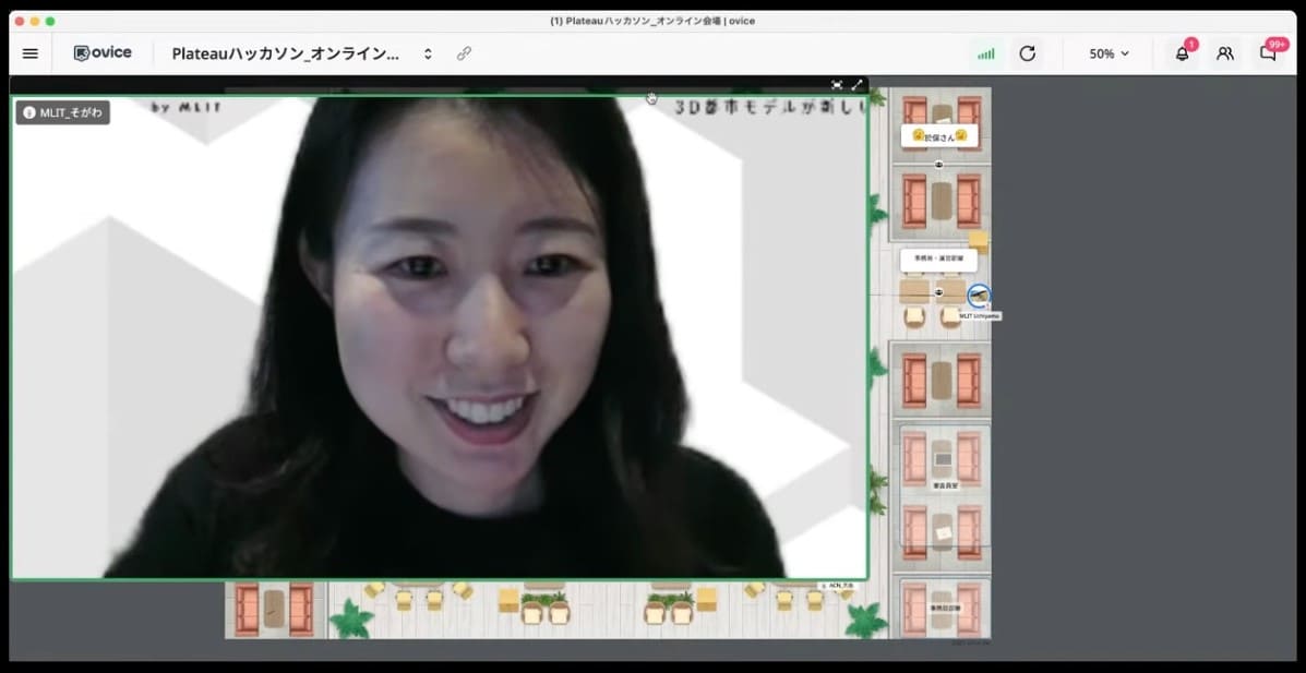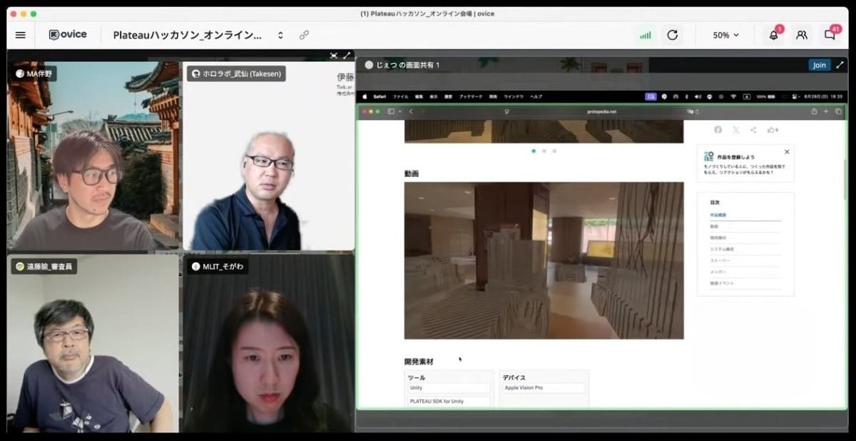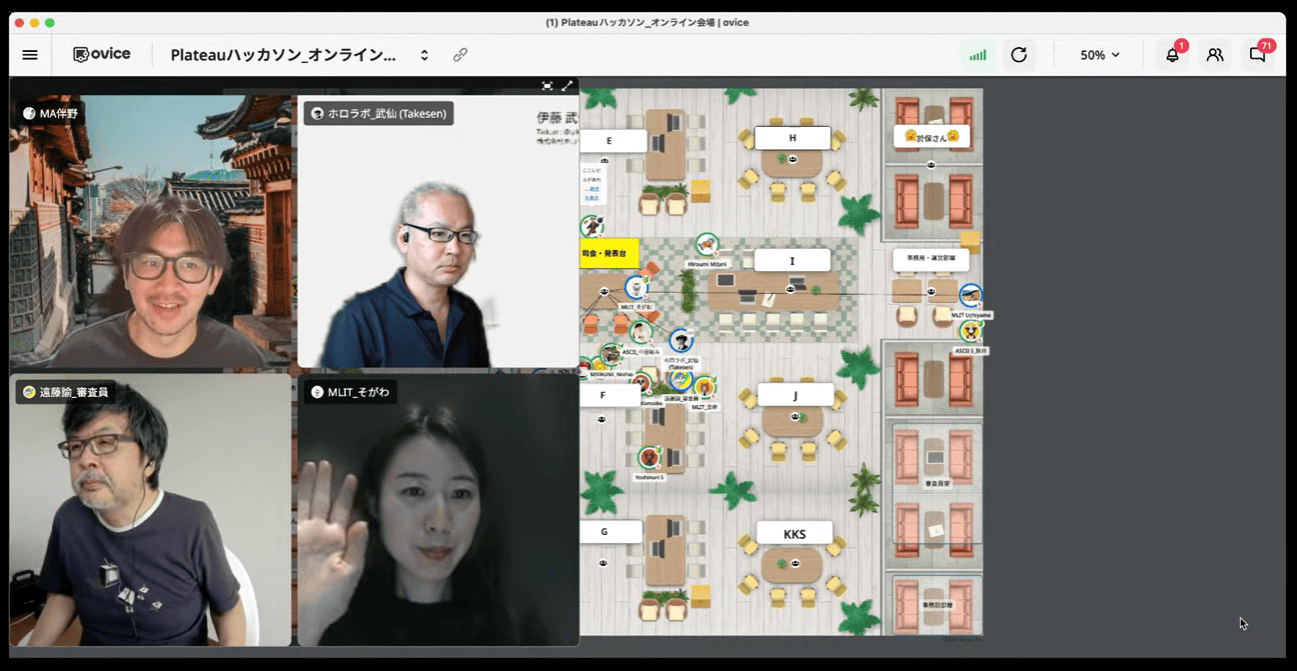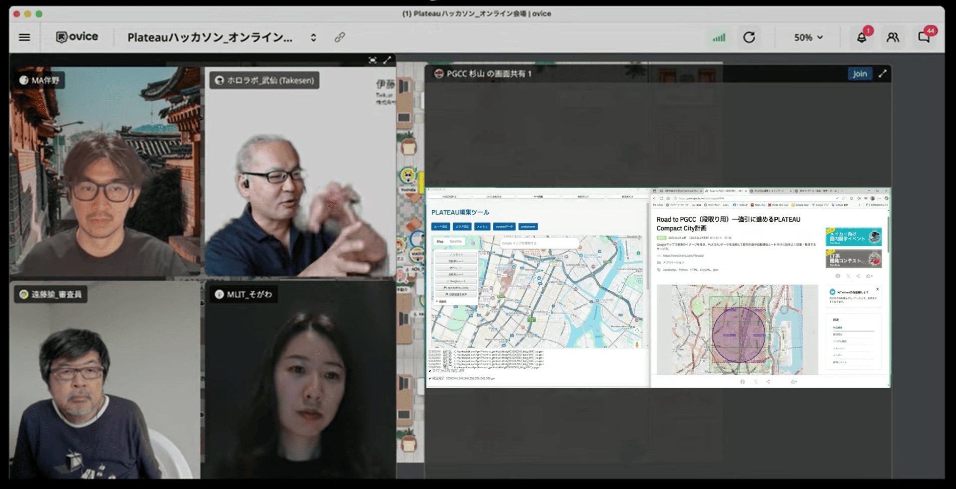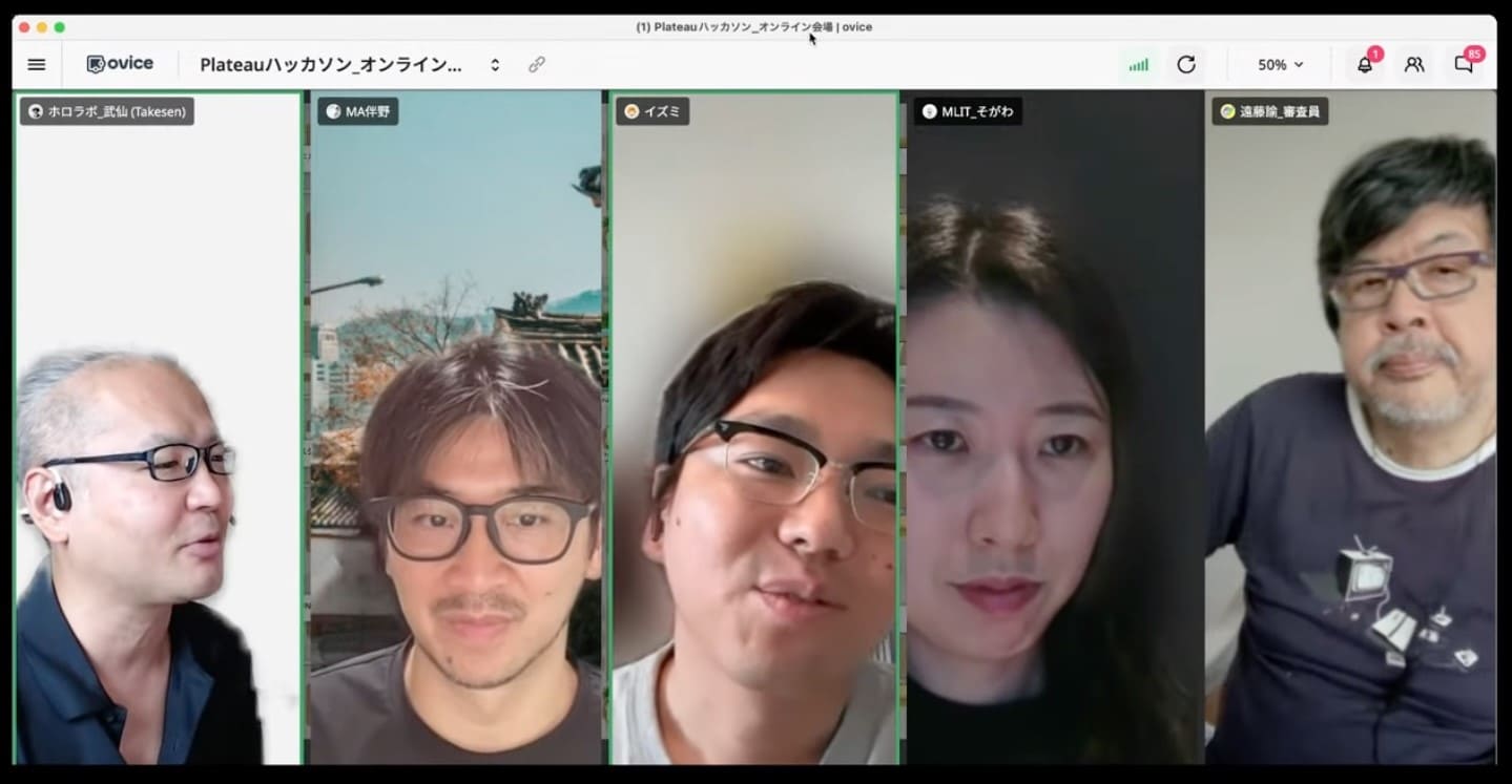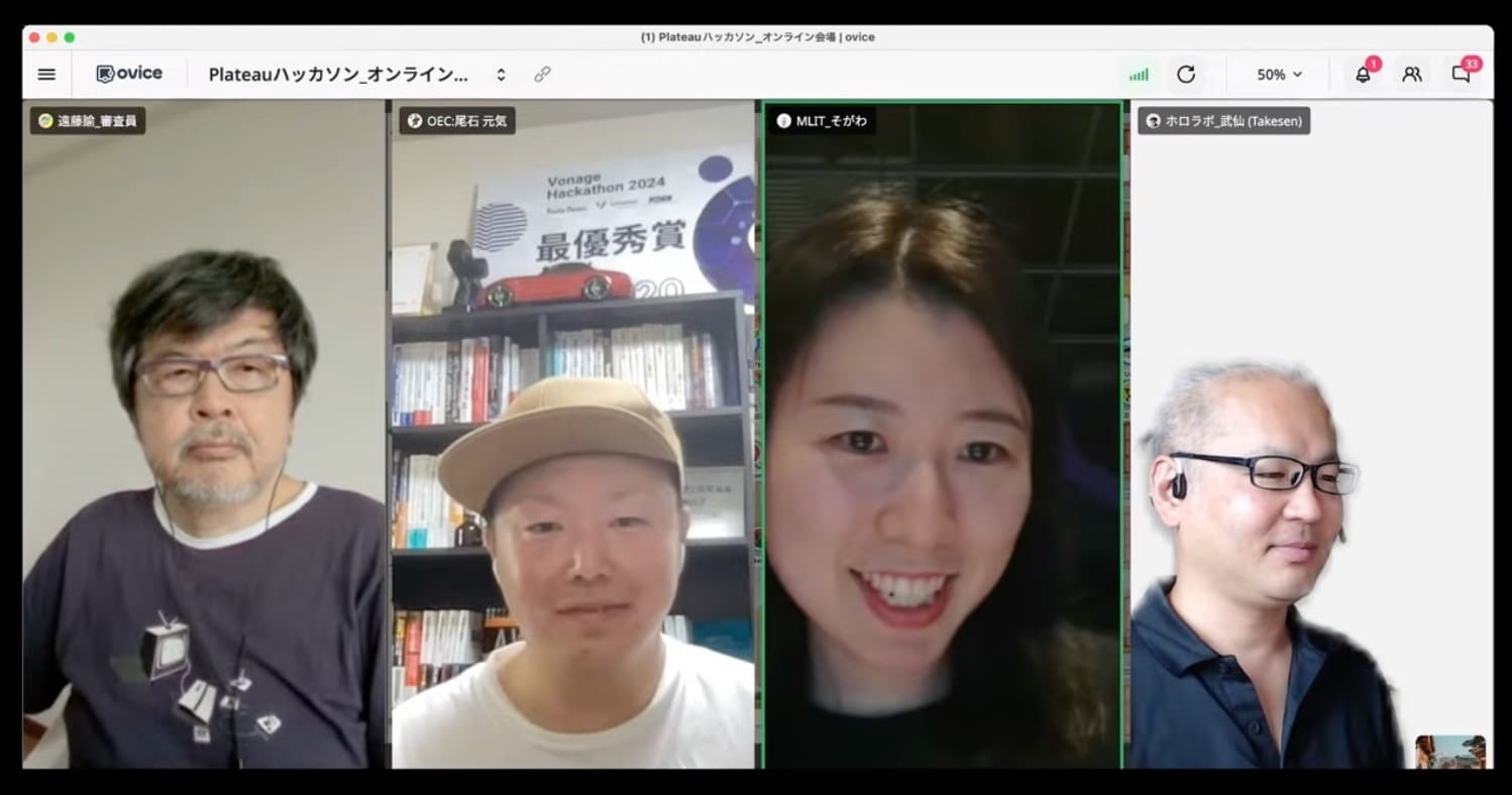 PLATEAU NEXT 2025の取り組みの一環として、3D都市モデル「PLATEAU」の社会実装を促すイベントのひとつ「PLATEAU Hack Challenge for ルーキー」が、2025年6月28、29日にバーチャルスペース「oVice」を使ってオンライン開催された。PLATEAU初心者に向けたハッカソンだ。2日間にわたるプログラムを終えて最終プレゼンを行った8チームのうち、多くが1名参加による単独チームとなった。AIを使った個人での開発の可能性を示す一方、初対面同士でチームビルディングを行い、作品をつくりあげたルーキーチームの活躍も光った。