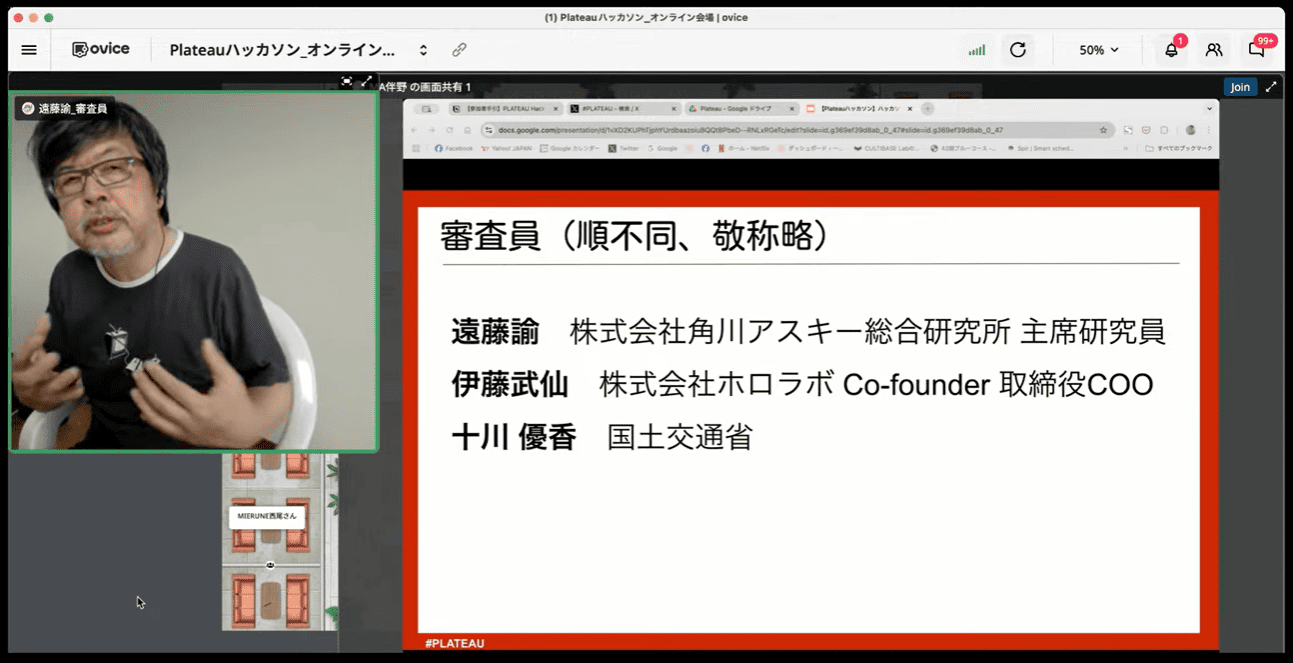 遠藤氏:PLATEAUに関わるようになって5年ほど経ちました。当初はデータの重さなどで非常に大変な面もありましたが、開発環境もかなり整ってきました。みなさんの発表を楽しみにしています。