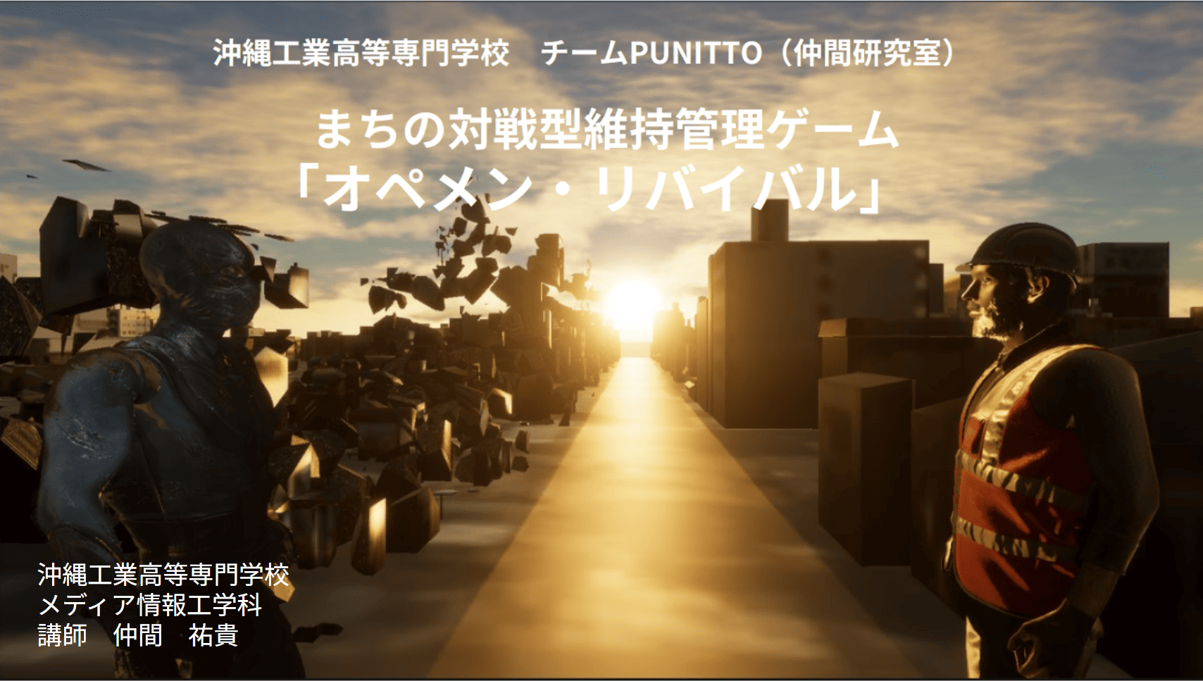 沖縄高専チームPUNITTOの作品は、都市インフラの維持管理をテーマにした対戦型ゲーム「オペメン・リバイバル」。都市の設備や施設を効率よく維持管理する視点を、ゲーミフィケーションによって体感できる仕組みだ。十川氏は「インフラDXは今後の重要テーマ。ゲームを通じて楽しく学べる教材としても可能性を感じている」と評価した。
