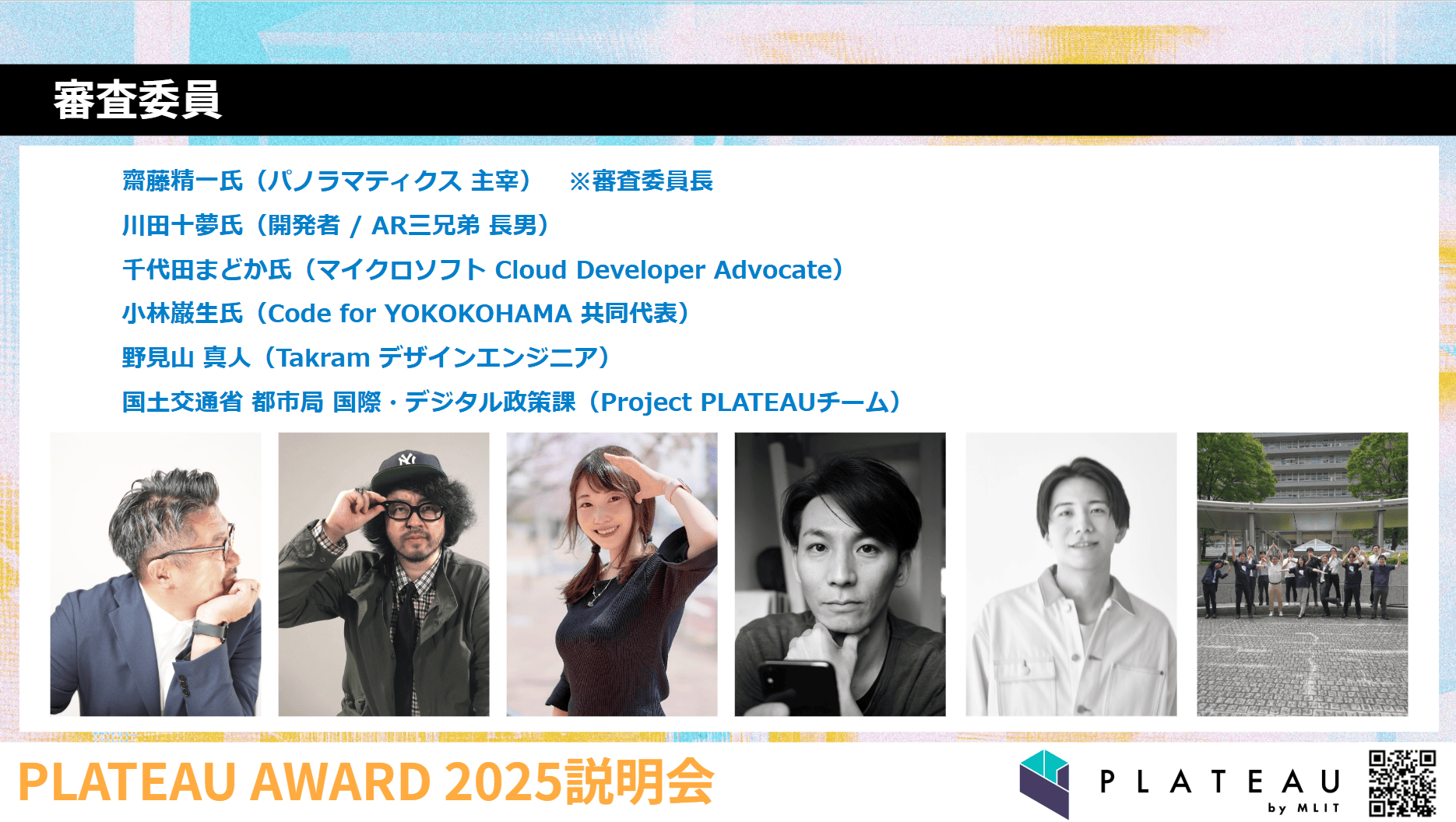 十川氏は「どんな作品でもウェルカム」としたうえで、「PLATEAU AWARDも4年目となり、テーマやアイデアが似た作品も増えてきたからこそ、過去の受賞作などを参考にしながらも、PLATEAUがまだあまり使われていない領域にアプローチした作品が出てきてほしい」と語った。さらに「新しいツールとの組み合わせも歓迎」と述べ、未知の切り口への挑戦に期待を寄せた。