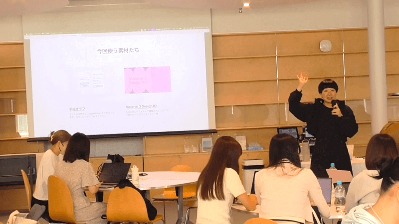 続いて、ツール類のレクチャーが行われた。UI・UXデザイナーである株式会社cencoの岡部氏は、UIデザインツール「Figma」の使い方を解説し、手描きのラフからアプリUIを作成するワークショップを行った。