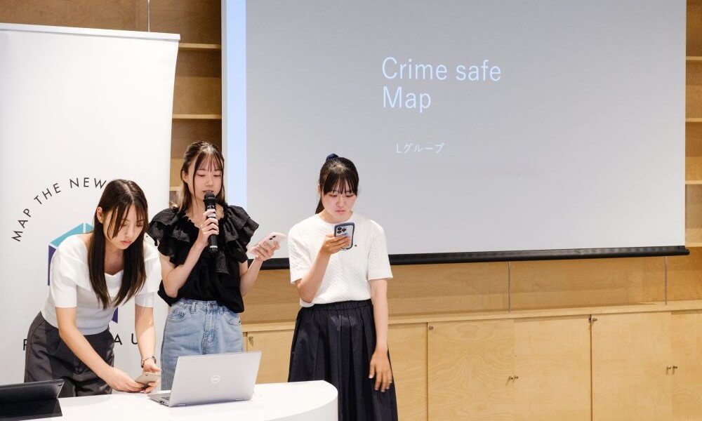 Lチームは、事件や犯罪を防止するためのアプリ「Crime safe Map」を提案。警視庁が公開する犯罪情報マップは十分に普及していない現状を踏まえ、PLATEAUの3D都市モデルと事件データを組み合わせ、発生場所や周辺環境との関係を可視化する仕組みを構想した。