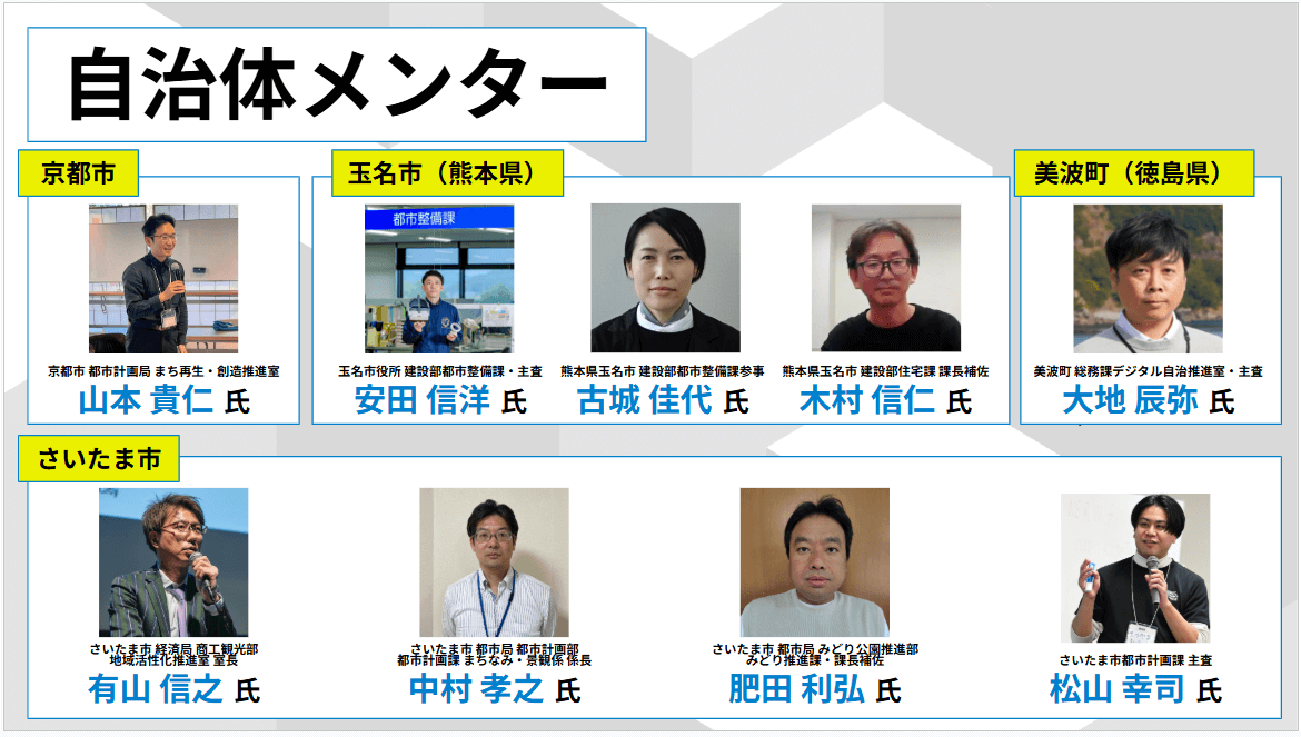 今回のイベントは、8月17日と31日の二日間に分けて行われた。自治体メンターには、京都市、さいたま市、玉名市、美波町の4自治体が参加。キックオフとなる8月17日には、まず参加者は興味のある各自治体のブリーフィングに個別に参加し、話を聞いたうえでアイデアを練っていった。そして8月31日までの期間中、Discordを通じて各自治体メンターとやり取りしながら準備を進めていった。