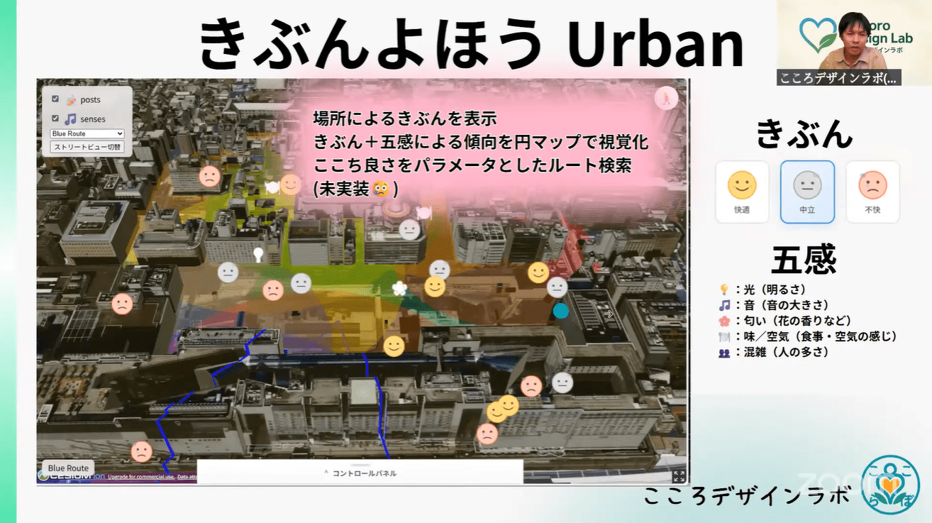 感情ヒートマップで不快な場所を可視化し、行政がデータに基づいて都市計画を検討する材料とすることも期待している。