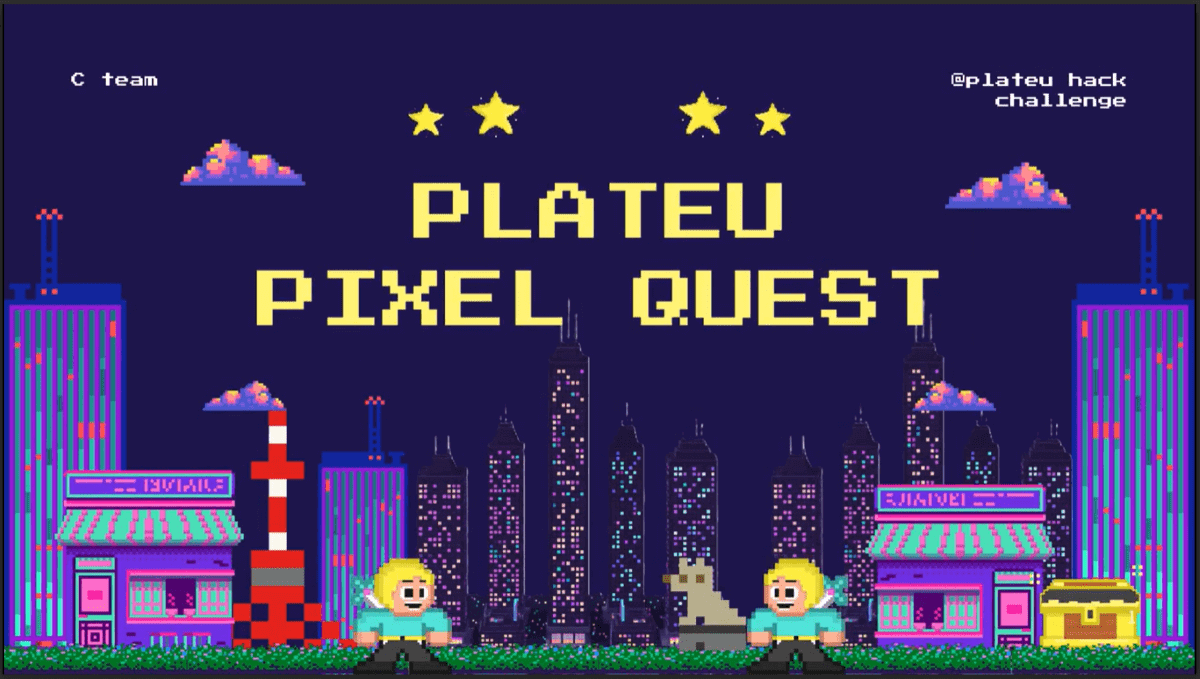 Cチームは、渋谷を舞台にしたレトロゲーム風の町おこしゲーム「PLATEU PIXEL QUEST alpha」を開発。「重くて扱いにくい」というイメージがあるPLATEAUのデータを、軽量で親しみやすいピクセルアートと掛け合わせることで、PLATEAUの世界を舞台にした軽快で面白いゲームが作れるのではないかと考え、着手したという。