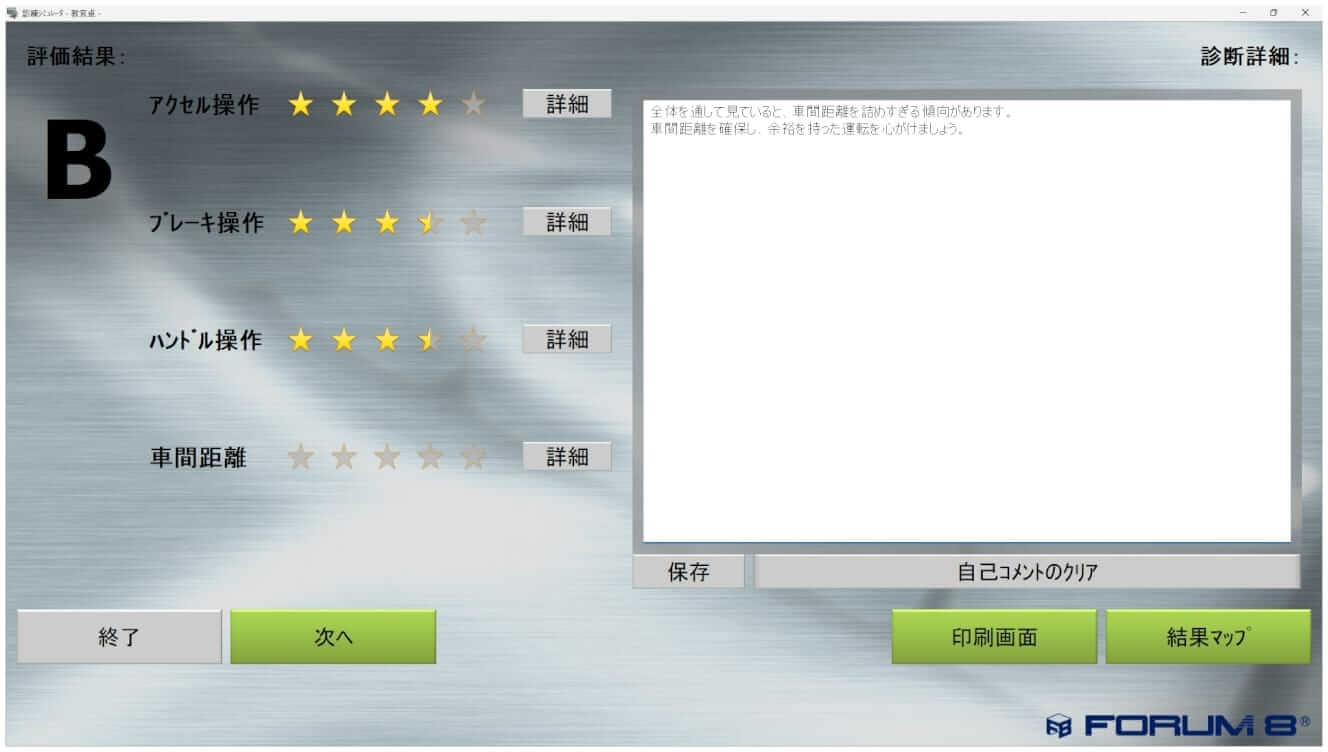 訓練中の走行ログやハンドル操作といった一連の運転行動は、独自開発されたプラグイン形式の訓練システムによって逐一記録される。この記録に基づき、危険箇所での一時停止や安全確認の有無などが客観的に評価され、ドライバーへのフィードバックとして出力される仕組みとなっている。