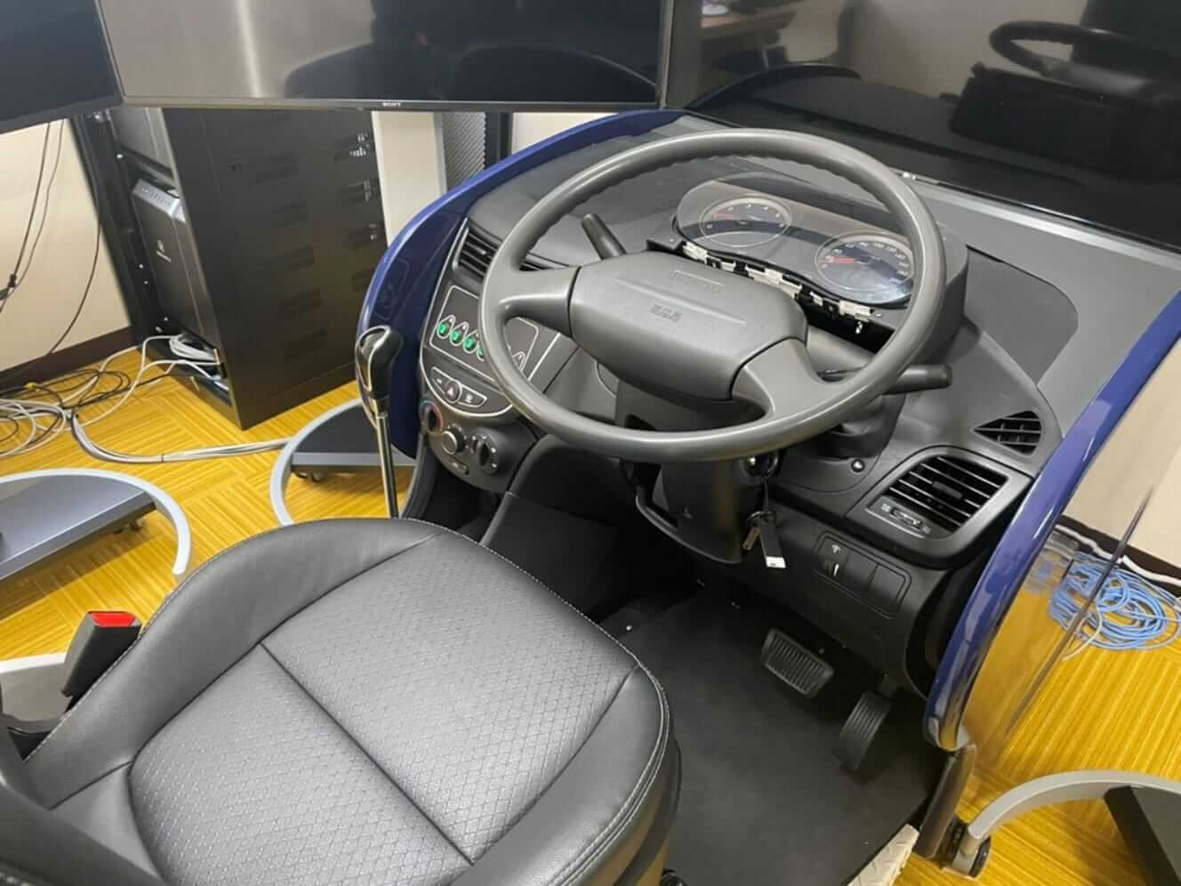 被験者を対象に、①3画面モニタと実物の運転席で構成され、最も没入感の高い訓練が可能な「フル版」、②1画面モニタで省スペース性に優れる「ライト版」、③ハンドルとペダルのみで構成され、手軽に導入できる「コントローラ版」という特徴の異なる3タイプのシミュレータを用いた訓練を実施した。