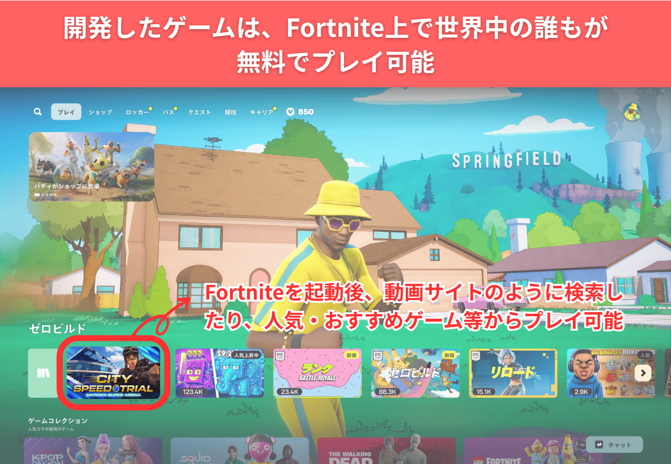 開発したコンテンツは、Fortnite内の「島コード」を通じてグローバルに公開した。これにより、主要ターゲットである若年層や域外層への集中的なアプローチを可能にするとともに、属性や居住地を問わず世界中のプレイヤーが常時アクセス可能なオンライン環境を整備した。