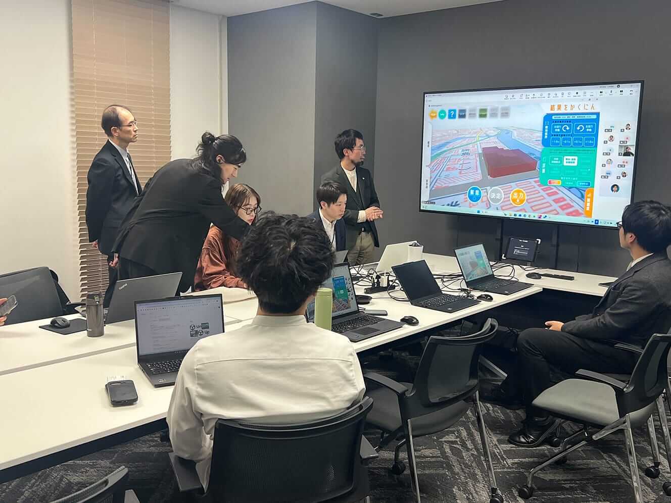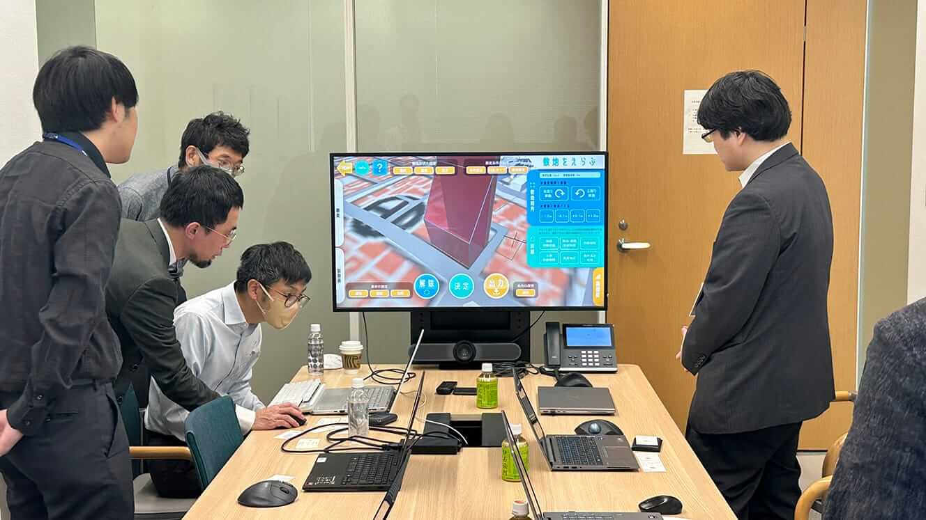 本実証実験では、システムの有用性検証として、建築計画可能なボリュームの検証を行う民間事業者である建築設計事務所2社、ゼネコン1社の有識者を対象に、建築可能ボリューム検証の自動化β版アプリケーションの体験会とアンケート・ヒアリング調査を実施した。
