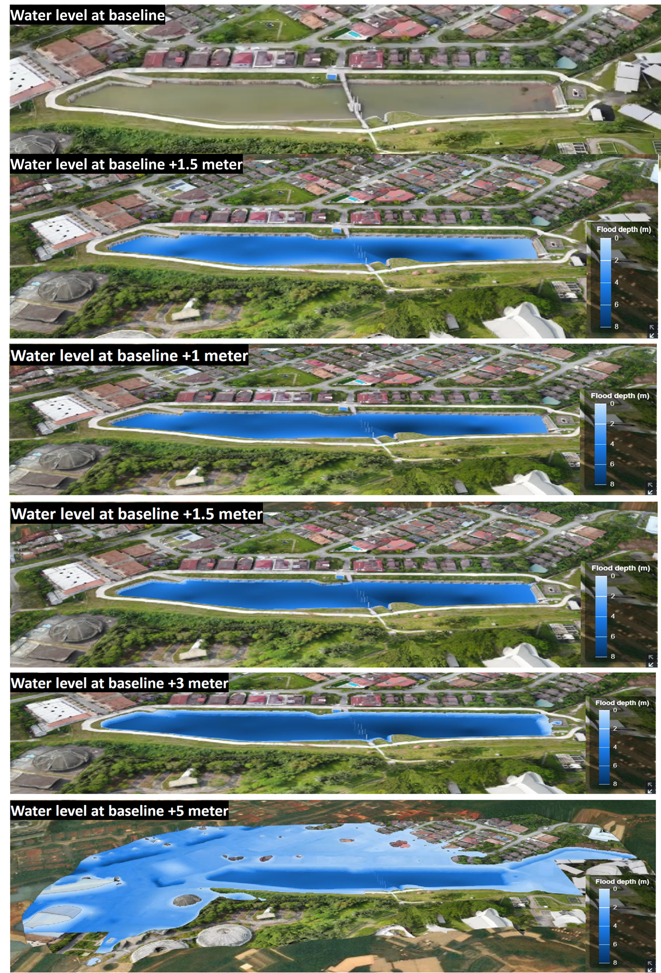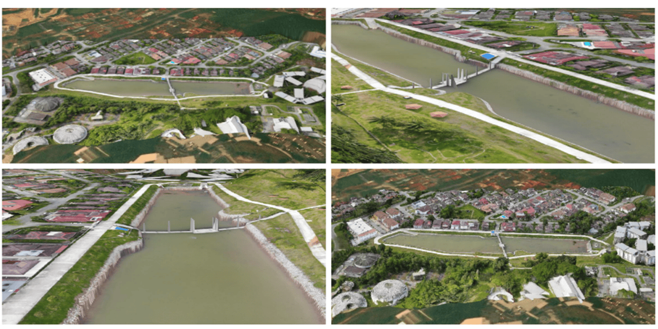 本システムは、3D都市モデルが未整備な海外都市においても、現地測量を行うことなく衛星画像とオープンデータからフォトリアルな都市デジタルツインを構築し、構築したデジタルツイン上で水害(洪水)等のリスクを可視化することで、現地の防災・都市計画の検討に寄与するツールである。