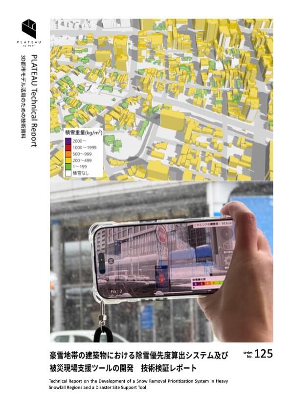 本プロジェクトでは、個々の建物の積雪重量や積雪荷重リスクなどの情報を提供するため、防災科学技術研究所と連携し、雪おろシグナルと3D都市モデルを組み合わせた「除雪優先度算出システム」の開発を行う。3D都市モデルの屋根勾配や建築年等の属性情報と雪おろシグナルの広域の積雪荷重情報を組み合わせることで、個々の建物の積雪荷重やそのリスクが予測可能となり、除雪作業を行う住民や除雪の担い手(共助団体など)の方々にその情報を活用いただくことで、除雪作業や計画の支援が可能となる。また、「被災現場支援ツール」を活用し、リアルタイムで被災前の状況や建物危険度をAR上で重畳するツールについてデータの整備及び実証を行う。実証では、被災現場で活動を行う消防隊等に有用性や実装可能性などについてヒアリングを行い、社会実装に向けた課題を調査する。