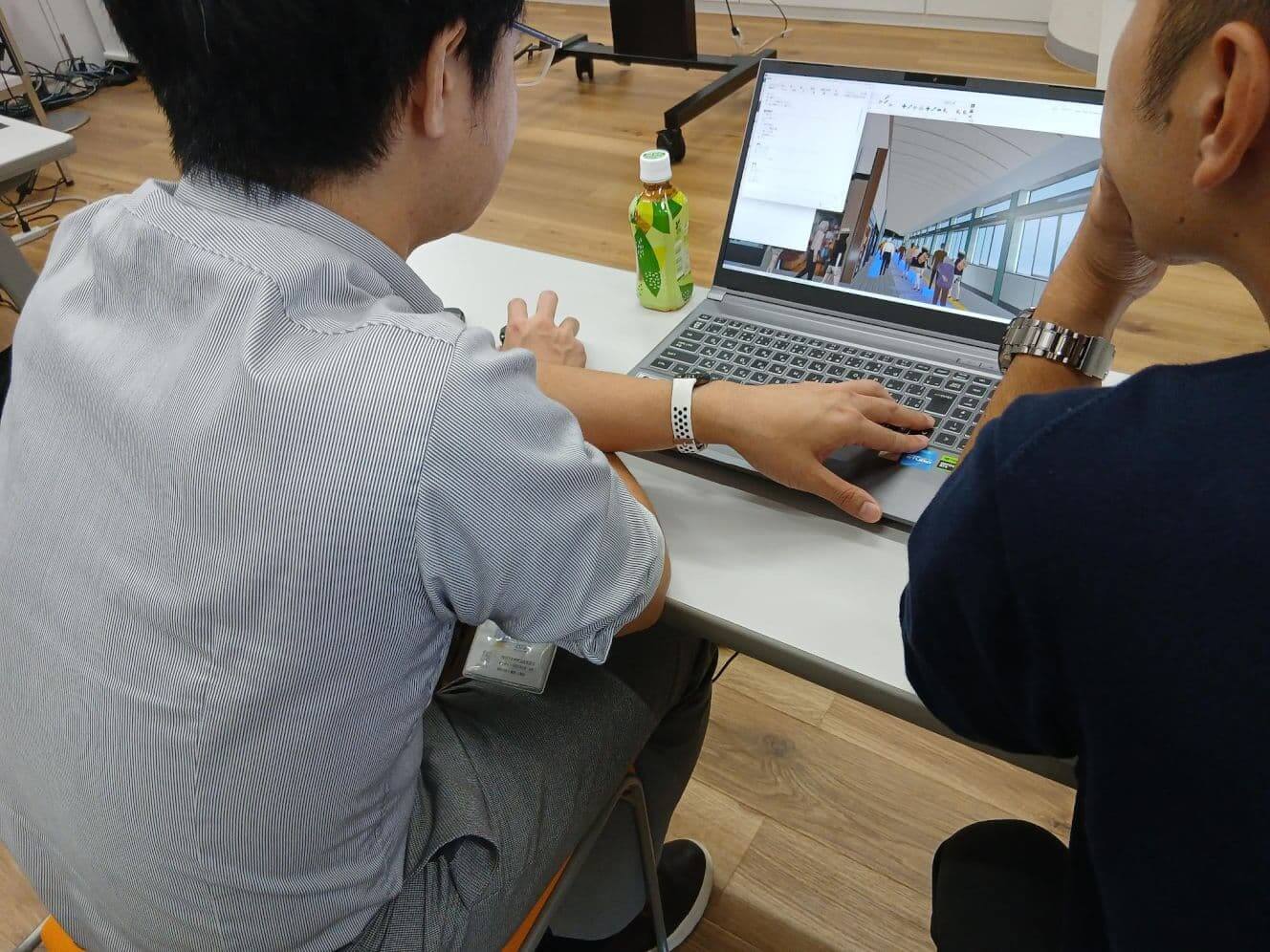 様々なパラメータ設定により複数シナリオの検証ができる点について好意的な評価を頂いた。一方で、設定項目の多さから操作性の難易度に関する指摘が多数発生した。特に、視点・移動操作と、パラメータ設定が多数存在することでの事前インプットの多さの二つの観点から難易度の高さが懸念されている状況であった。簡易にシミュレーション実行できると良いとの声があがる反面、より再現性を高めるための設定項目を追加して欲しいとの意見もでていたため、一概に設定項目の減少に踏み切ることは難しい。解決に向けた糸口として、2回の実証実験におけるレクチャー方法の違いが示唆を与えた。1回目実証では一度に視点・移動操作だけでなくシミュレーション実行に必要な多くの設定まで同時に開始したため、初見での利用では対応が追い付かないケースが発生していた。2回目実証では、事前設定による設定項目の絞り込みによる実証形式としたこと、マウスだけでなくキーボードを活用した操作方法のレクチャーを丁寧に実施したことから1回目と比較して操作に躓く割合が減少した。このことから、UI/UXの改善や設定の平易化・自動化が今後の課題であると同時に、利用者の習熟度がツールの評価を大きく左右する点が明らかになった。