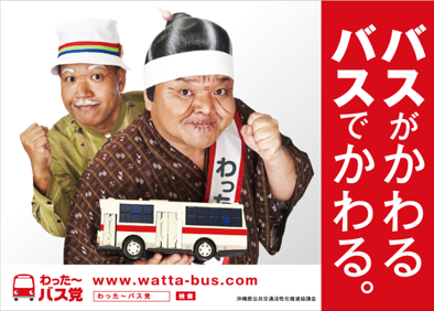 過度な自家用車依存から路線バス利用への転換促進のため「7つのもっと。」というマニフェストを掲げ平成二十四年の発足からバス利便性を向上させるとともに多様な企業・団体・個人を巻込みバスを身近に感じる様々な取組を実施し沖縄県民のバス利用の機運を醸成することで利用促進を展開するなど地域公共交通の確保・維持に積極的に取り組んだ。