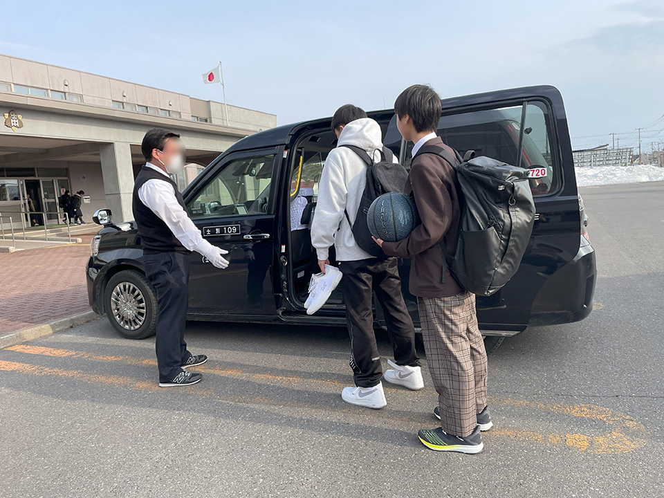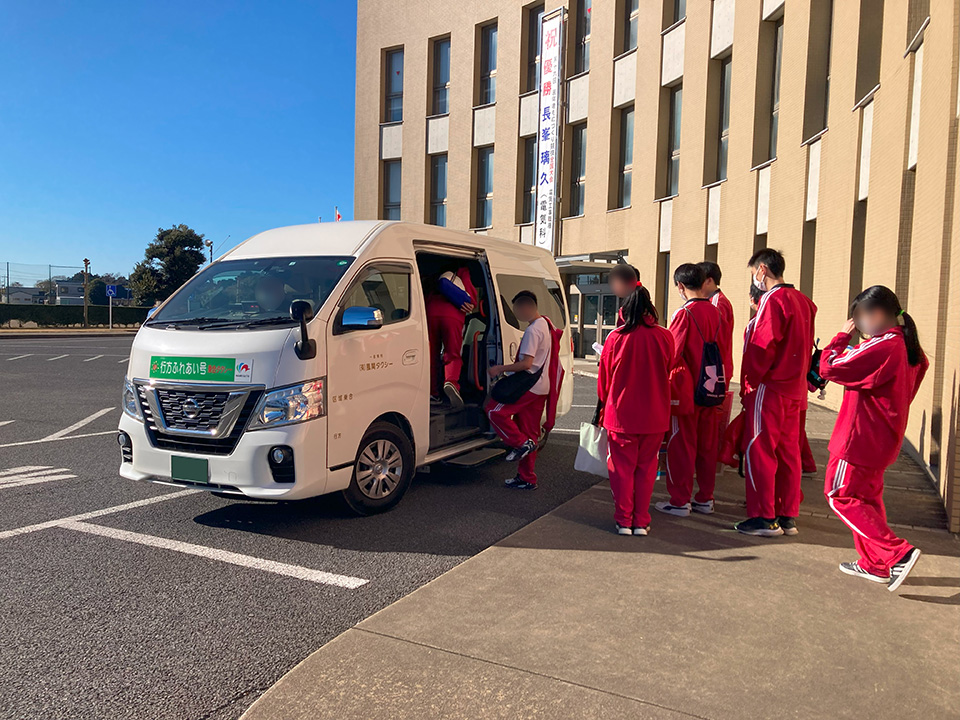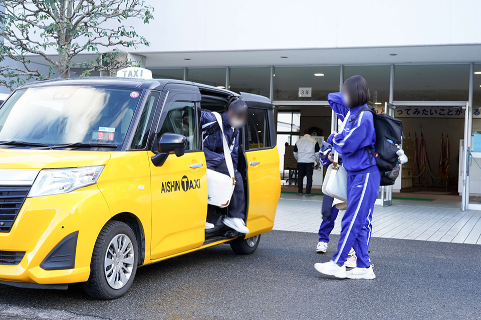 過疎地域にある中学校では、複数校合同で部活動を行う必要がある中で、学校間を移動する交通手段の確立が課題であったため、部活動毎に整備した練習の拠点校等と生徒の在籍校をジャンボタクシーもしくはタクシーを使って無料で送迎するシステムを導入した。
