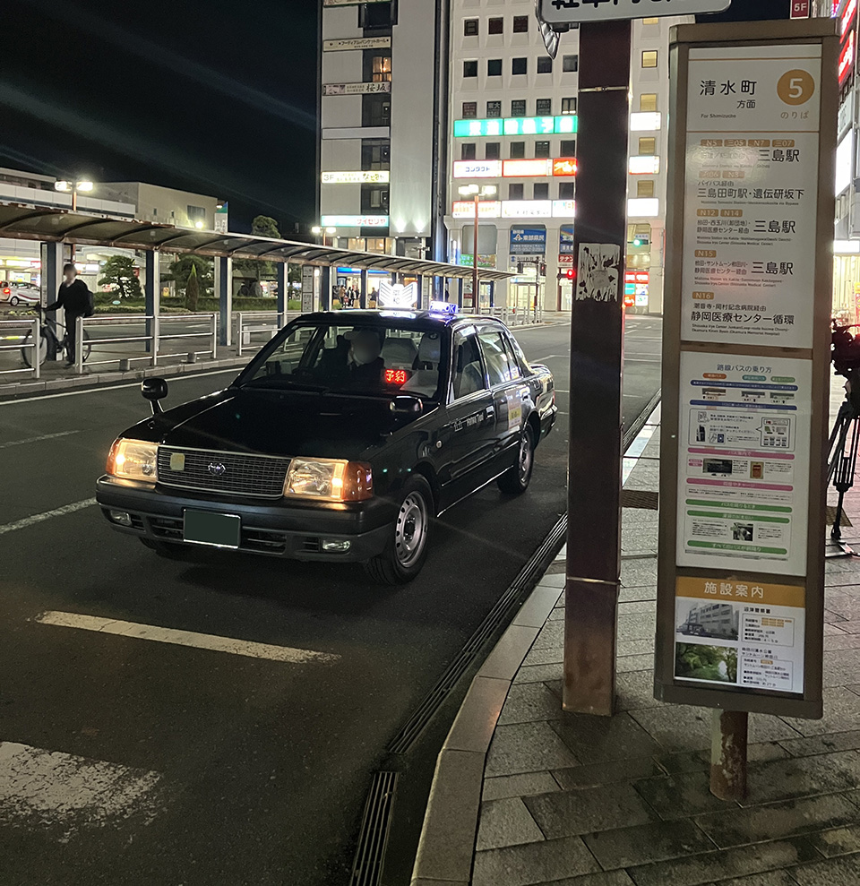 沼津駅発の最終バスがJR東海道本線の最終電車と接続していない状況であったため、タクシーの利用実態の解析データを基に3路線を設定し、夜間に路線上のバス停で降車可能な定路線型の乗合タクシーの運行を実施した。