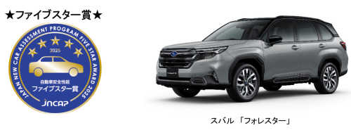 | 国土交通省とナスバ((独)自動車事故対策機構)が自動車の安全性能を評価・公表する「自動車アセスメント」において、スバル「フォレスター」が最高評価の「ファイブスター賞」を受賞しました! |