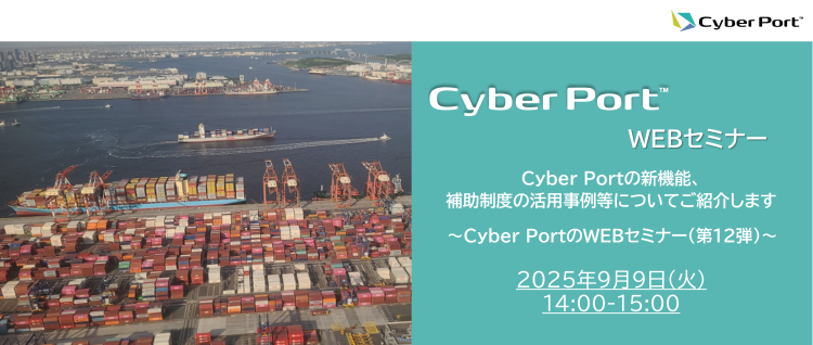 令和7年9月9日に「Cyber Port(港湾物流)」に関するWEBセミナーを開催します。今回は、Cyber Portの新機能、補助制度の活用事例等についてご紹介します。 |