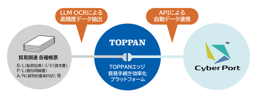 国土交通省港湾局とTOPPANエッジ株式会社(以下、TOPPANエッジ)は、サイバーポートと、TOPPANホールディングスのグループ会社であるTOPPANエッジが開発した「貿易手続き効率化プラットフォーム」のシステム連携に向けた協働を開始します。 |