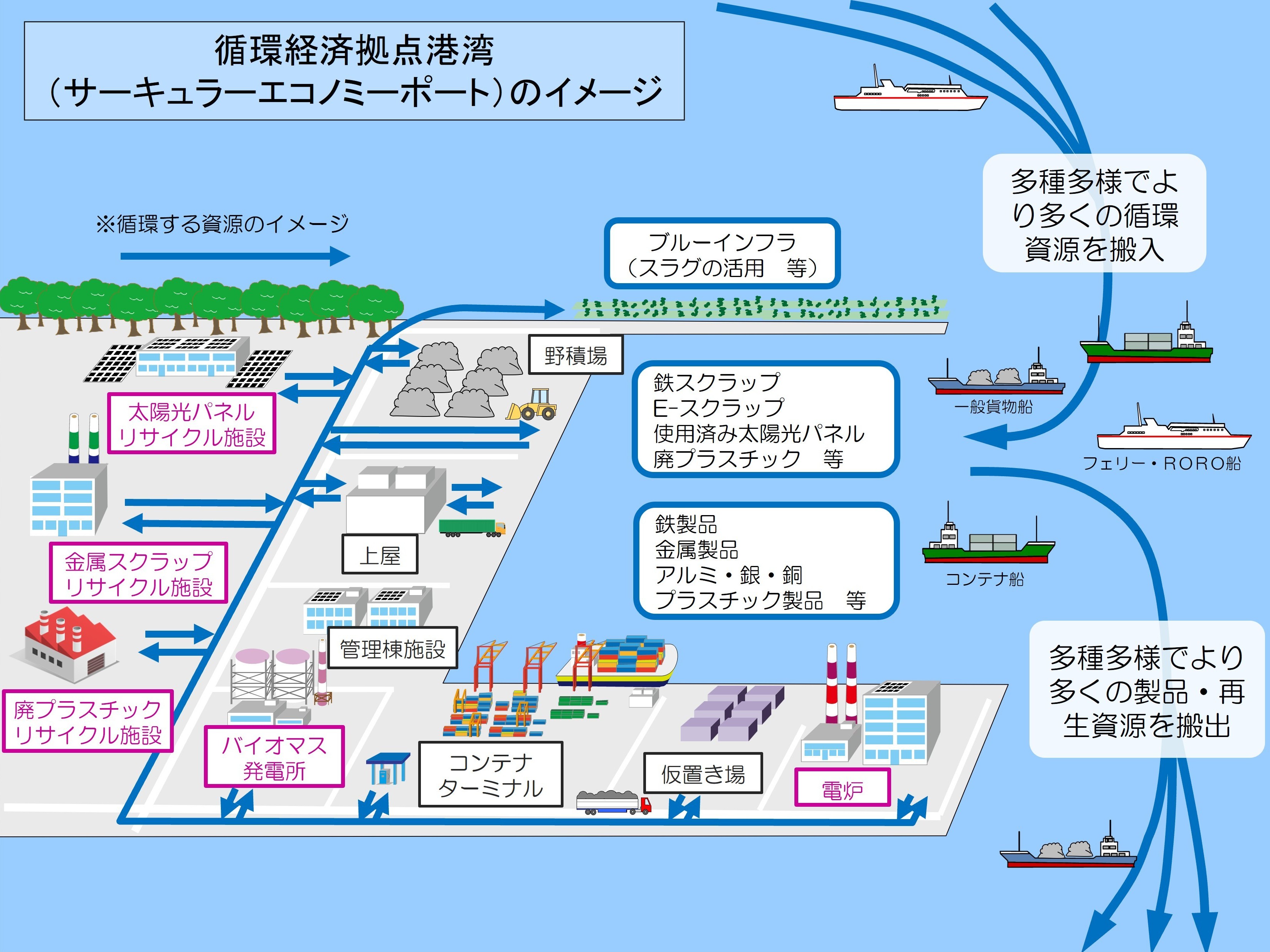国土交通省港湾局では、循環経済(サーキュラーエコノミー)の実現に向け、循環資源に関する物流ネットワークの拠点の形成や高度なリサイクル技術を有する産業の集積に取り組む港湾を「循環経済拠点港湾(サーキュラーエコノミーポート)」として募集します。