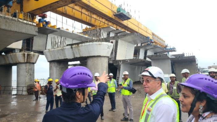 路(Versova-Bandra Sea Link)の作業ヤードや工事現場を視察しました。