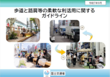 道路に対する利活用のニーズの多様化に対応するため、歩道に加えて路肩等の柔 軟な利活用の促進を目的として、「歩道と路肩等の柔軟な利活用に関するガイドラ イン」を策定しました。 |