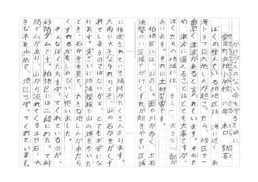 | 愛媛県 愛南町立柏小学校 6年 木口 凱喜 「かげがえのない命を守るために」 |