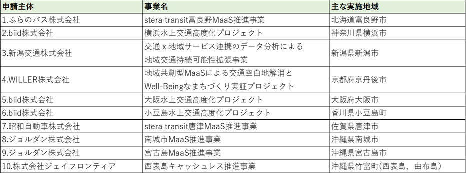 | 国土交通省では、「交通空白」の解消など地域交通の「リ・デザイン」全面展開を図るため、地域の 課題解決に資する MaaS (Mobility as a Service)の導入を支援しています。 令和7年度の2次公募では、全国10事業を支援対象として選定しました。 |