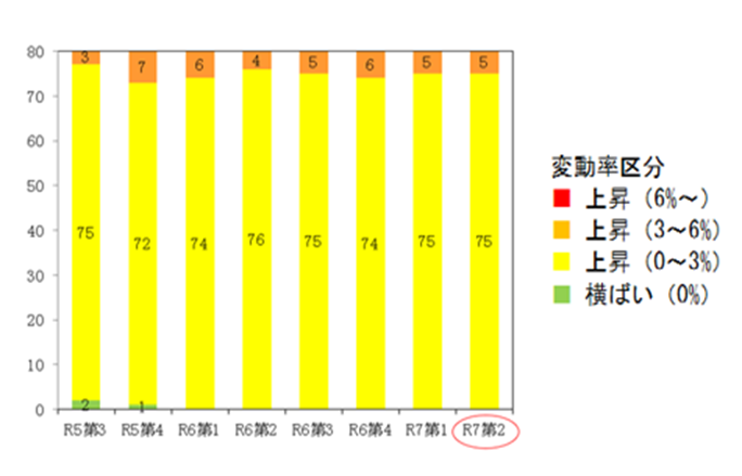 ※地価LOOK レポート(主要都市の高度利用地地価動向報告)とは、国土交通省が、主要都市の高度利用地等を対象に、四半期毎の地価動向を調査し、先行的な地価動向を明らかにするもの。