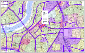 - Webの地図上で誰もが簡単に表示して、地価公示、都市計画、防災情報、周辺施設など多様なデータと重ね合わせて利用することが可能となります。