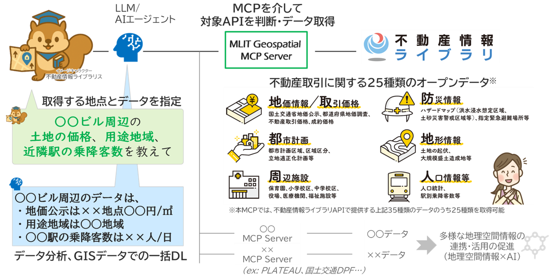 | AIを活用して自然言語で多様な地理空間情報を容易に連携・活用できる「地理空間MCP Server-MLIT Geospacial MCP Server-」(α版)を公開いたします。 |