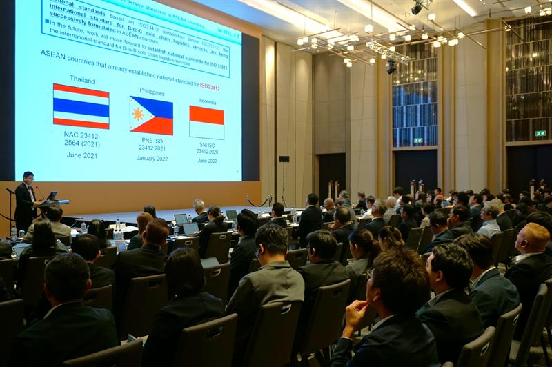 | 国土交通省では、日ASEAN交通連携の一環として、コールドチェーン物流普及の取り組みを支援しています。 この度、タイにおいて1月14日(水)に日ASEAN物流専門家会合を、15日(木)にコールドチェーン物流ワークショップを開催しました。 第20回日ASEAN物流専門家会合においては、ASEANにおける質の高いコールドチェーン物流の促進、物流人材の育成および環境に優しいグリーン物流の促進に向けた取り組み等について情報共有を行いました。コールドチェーン物流ワークショップにおいては、学識経験者による基調講演のほか、日系を含む現地企業による取組の紹介やコールドチェーン物流に関する物流機器の紹介などが行われました。ワークショップにおいては、事業者が商談を行える展示ブースを設け、日タイ双方の事業者による活発な交流が行われました。 |