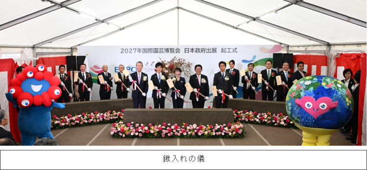 | 国土交通省及び農林水産省は、令和7年11月2日(日)にGREEN×EXPO 2027(2027年国際園芸博覧会)日本政府出展の建設工事の安全と成功を祈念して起工式を開催しました。 |