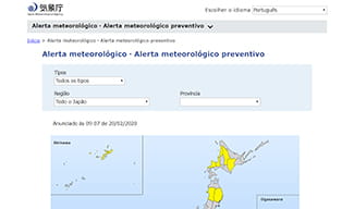 Informações sobre meteorologia (clima, chuvas fortes, alta temperaturas etc.), terremotos, tsunami e vulcões