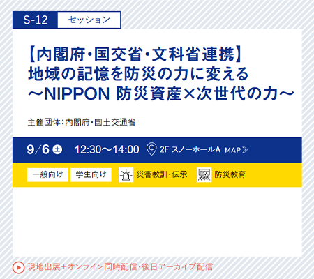 内閣府、国土交通省では、地域で発生した災害の状況を分かりやすく伝える施設や災害の教訓を伝承する活動などを、「NIPPON防災資産」として内閣府特命担当大臣(防災)、国土交通大臣が認定する制度を令和6年5月に新たに創設しました。