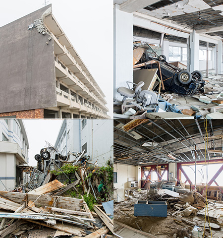 被災した気仙沼向洋高校旧校舎を「ありのままの姿(折り重なった車、破壊された校舎等)」で震災遺構として現状保存、公開し、地震や津波の恐ろしさを強いインパクトで伝えている。