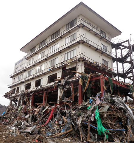 津波の痕跡が残る田老の防潮堤や津波遺構「たろう観光ホテル」などを案内する防災ガイド事業を通して、津波災害の記憶と教訓を現地に訪れる人々に伝えている。