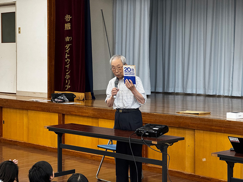 大分市立別保小学校5年生は昭和18年の洪水発生当時、別保小学校3年生だった「木村寛一氏」の貴重な被災体験談を通して、大雨の時の河川の怖さ・避難の重要性・地域の特性を学びます。