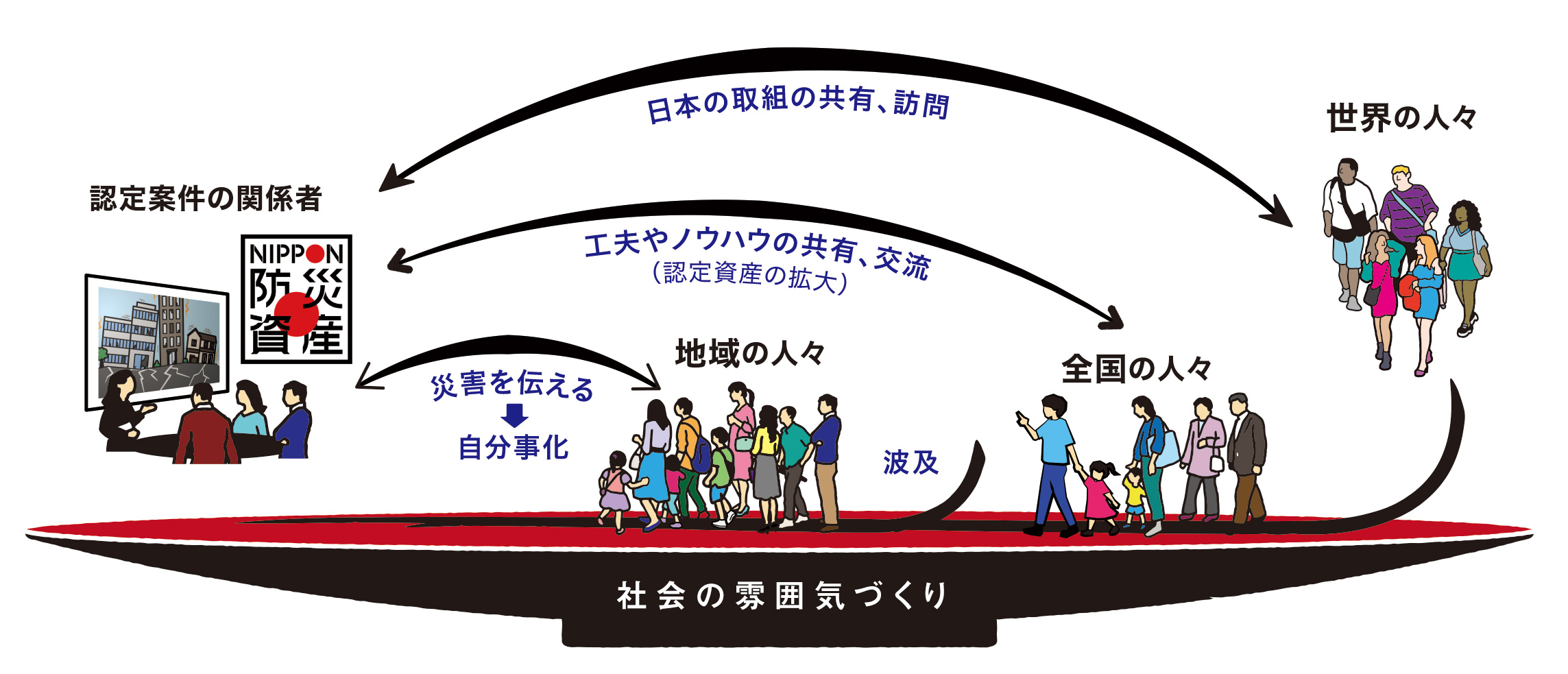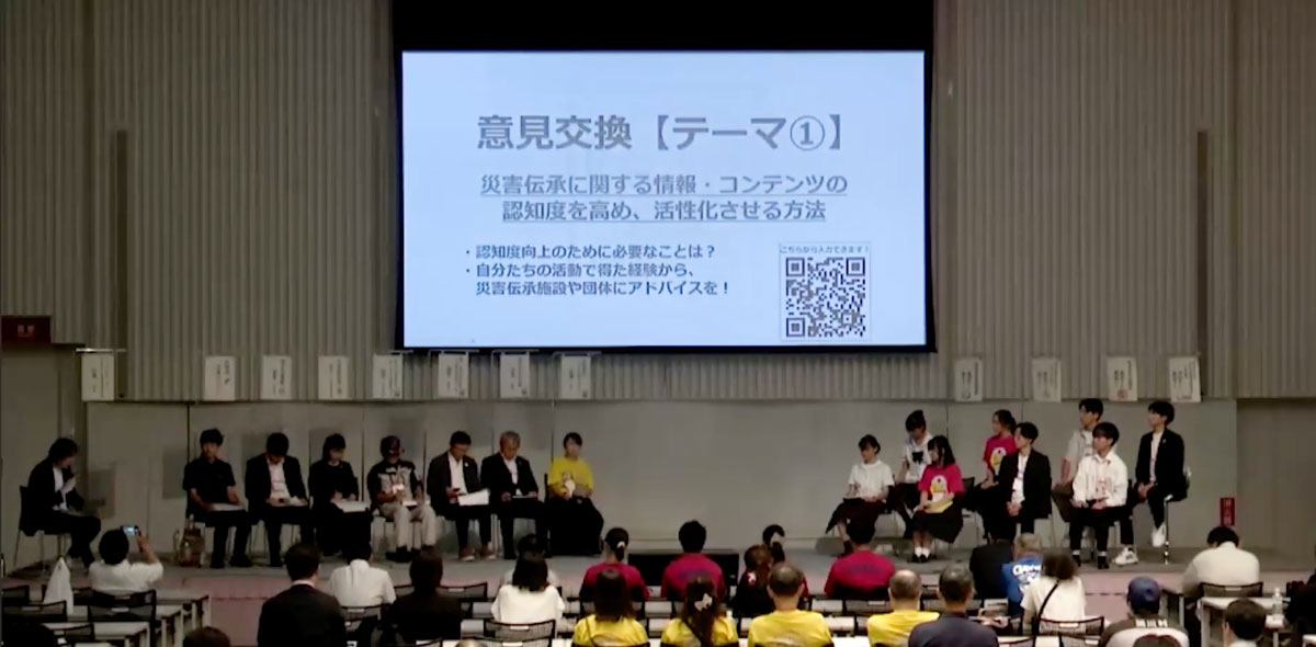 では、災害のことを人々が”自分の事”ととらえ、備えを進めたり、いざというときにとっさの行動がとれるようにするにはどしたら良いか!? 多くの人が集まった「ぼうさいこくたい2025」でも議論されましたが(上写真)、私たちは「災害の伝承」に注目し、地域で起きた災害のことを語り継ぐことで自分事化をはかり(下図)、備えを促していくことで、地域の防災力を高めていきたいと考えました。