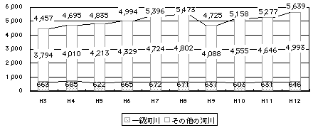 うち、一級河川は646地点、その他の河川は4,993地点である。